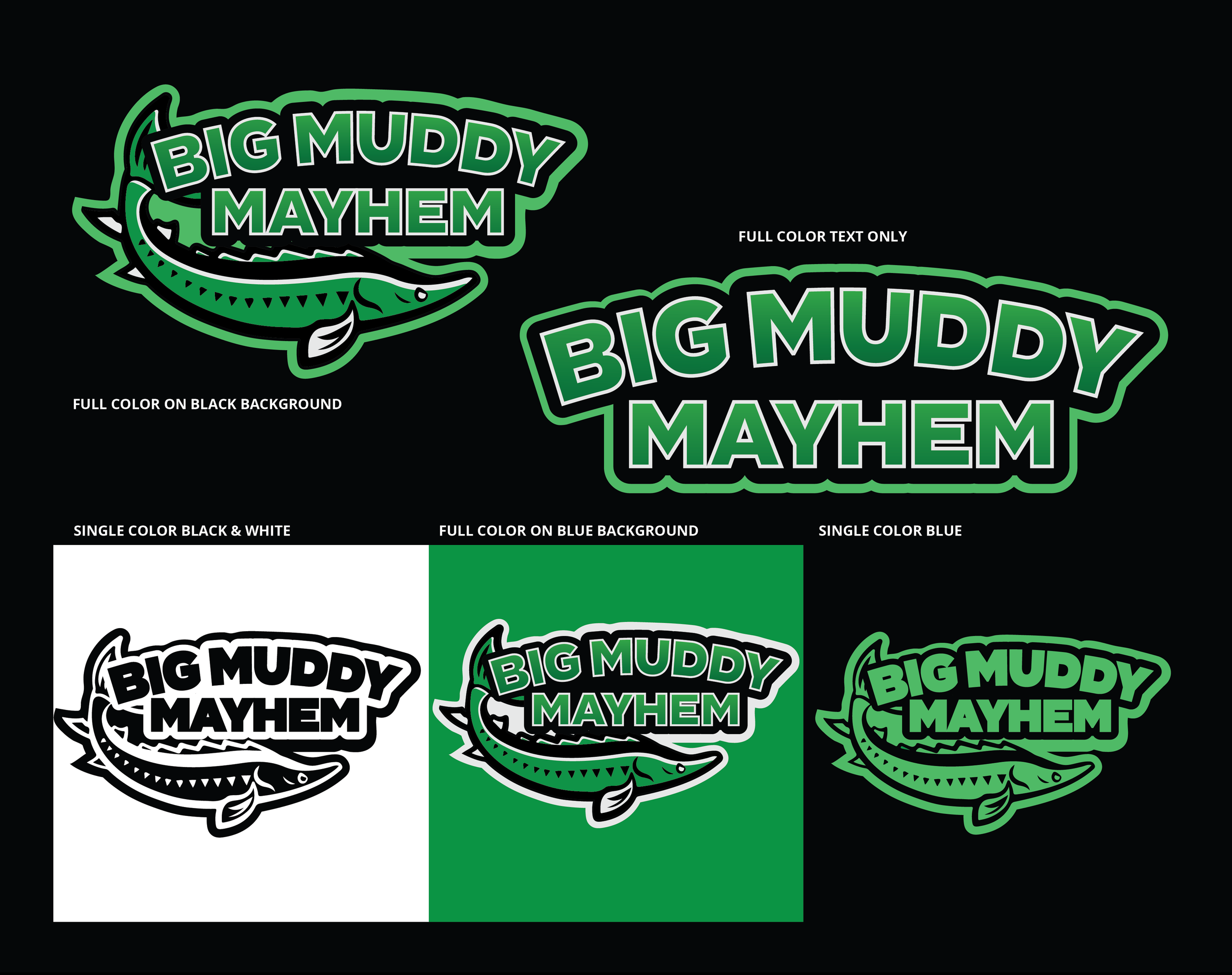 In the summer of 2023, CoMo Roller Derby created two home teams for local players to skate in during the off-season from competitive play. I volunteered to create logos for each team, and was provided the teams’ chosen names, mascots, and color combos to work with. For team Big Muddy Mayhem, the sturgeon was a simple enough mascot to source and incorporate. For team Devil’s Ice Boxers, the mascot of a pink planarian (a flatworm native only to the Devil’s Ice Box cave system), I faced more of a challenge, and let myself be guided by popular depictions of collectible monsters. These logos were used in print, digital, and apparel applications.