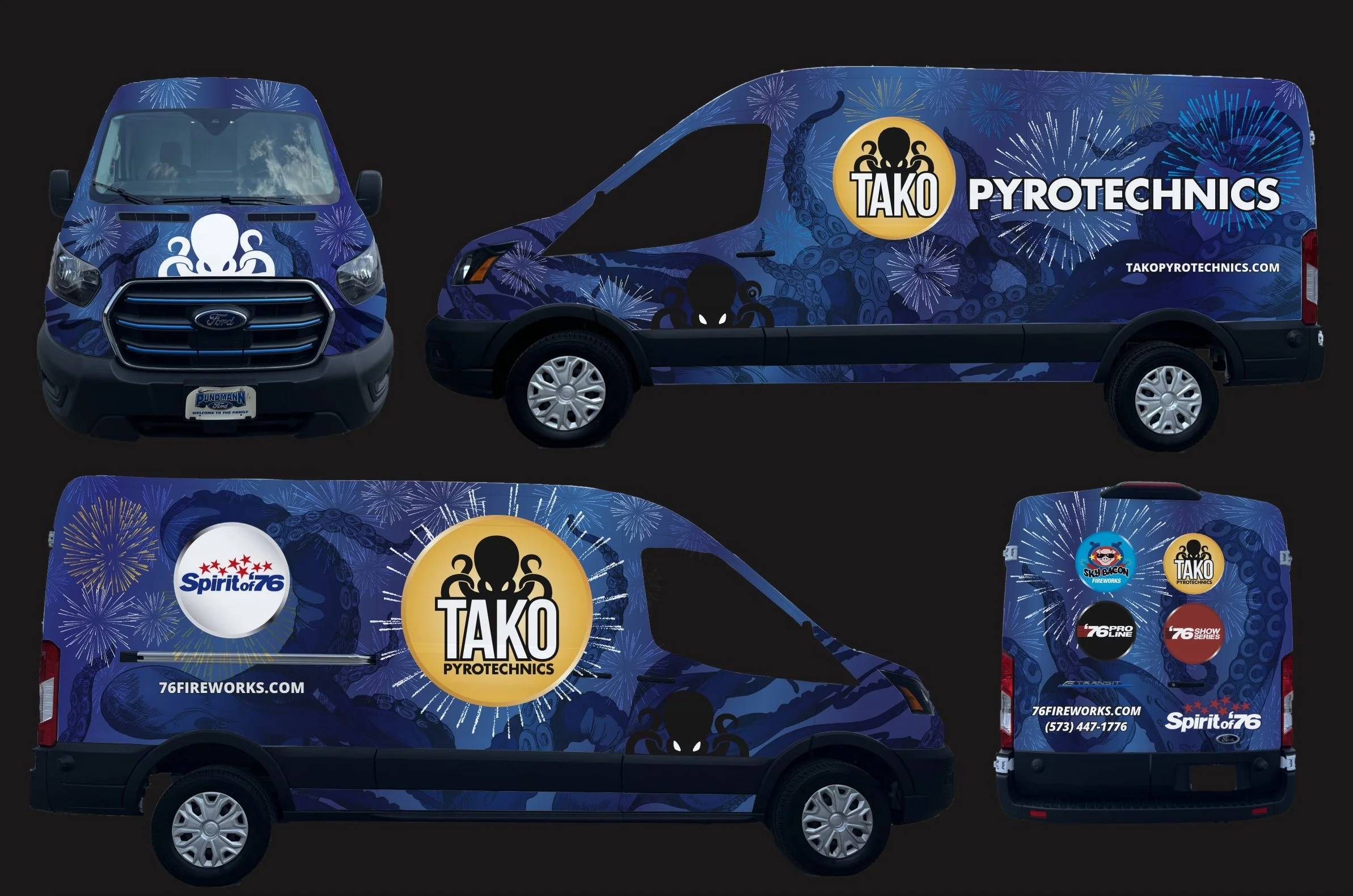 Tako Pyrotechnics is Spirit of ‘76 Fireworks’ brand of too-cool, cutting-edge, fantastically terrifying fireworks. During my time with Spirit, we have refined the brand and created promotional art to draw in consumers across platforms, including Spirit’s Trade Show Booth, Sprinter Van, and of course the Tako Pyrotechnics themselves.